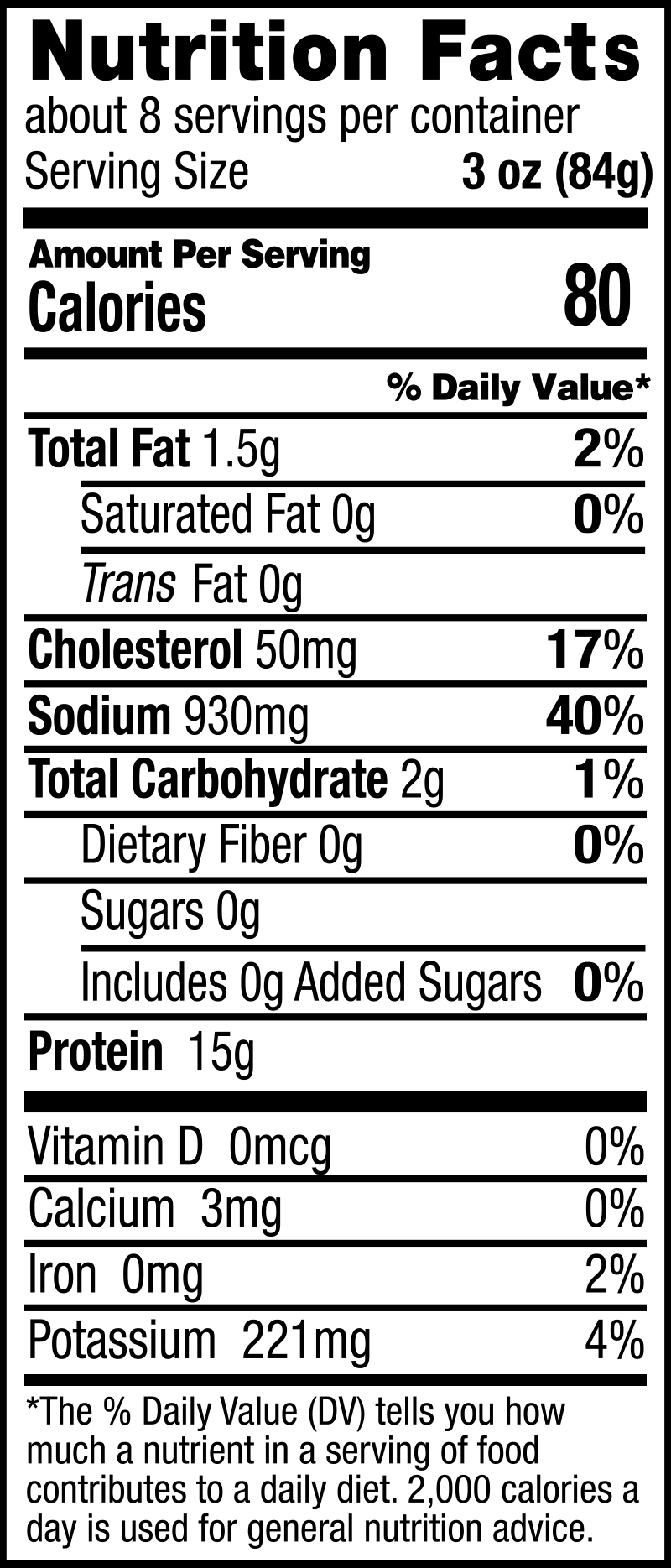 Chicken Breast, Water, Contains Less Than 2% Of Salt, Potato Starch, Vinegar, Dextrose, Sodium Phosphates, Chicken Flavor, Rosemary Extract.